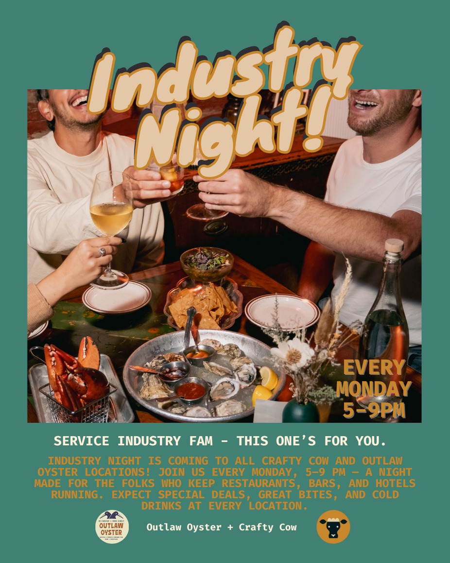 Join us every Monday, 5–9 PM — a night made for the folks who keep restaurants, bars, and hotels running. Expect special deals, great bites, and cold drinks at every location.